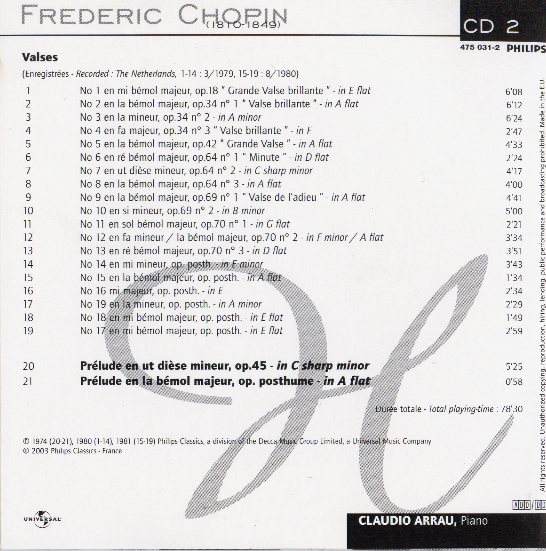 - 14 - Claudio Arrau - Valse No.14 E Minor, Op. Posth.flac