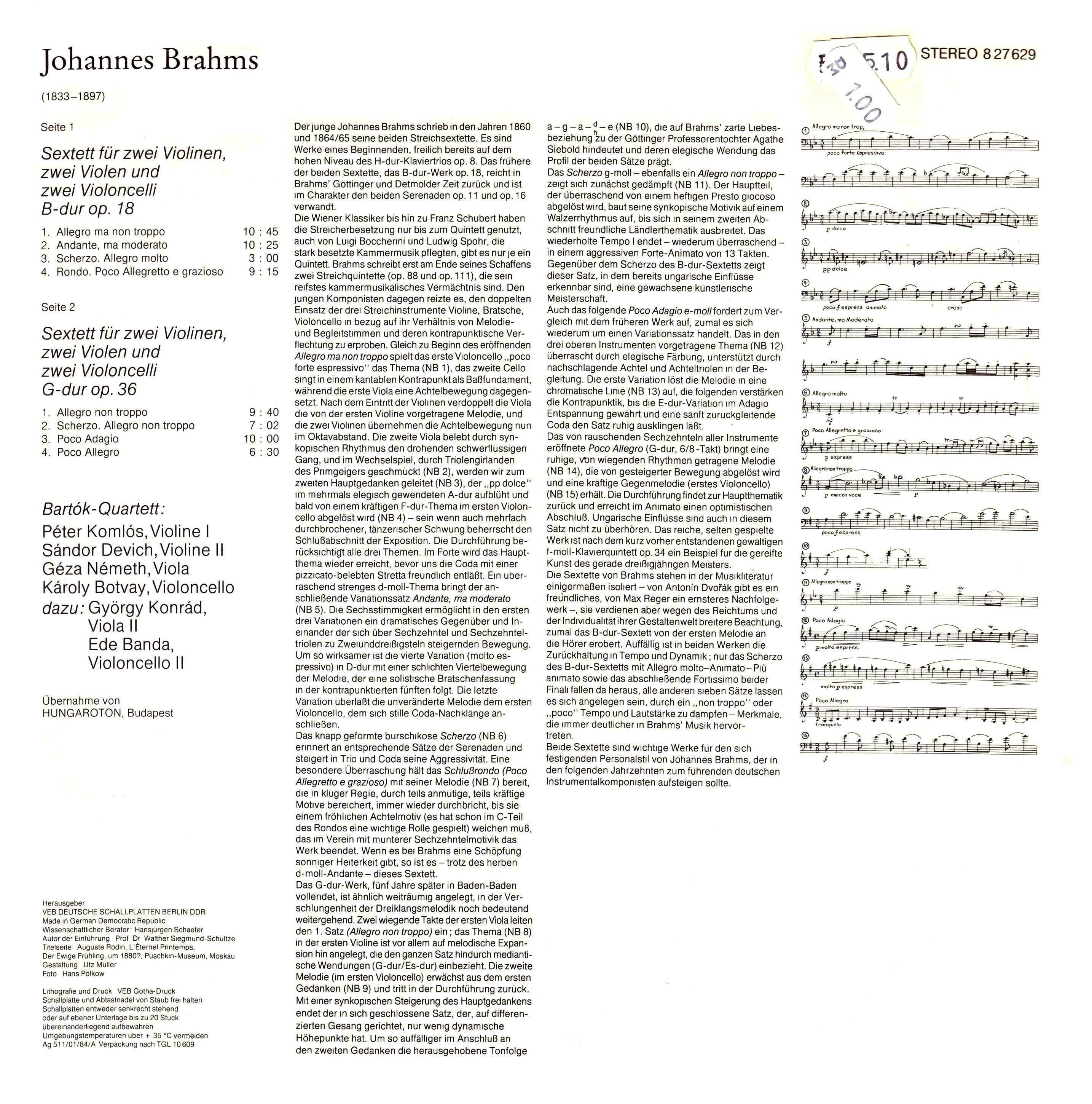 Information - Brahms - Sextets Nos. 1 & 2 - Bartók Quartet.rtf