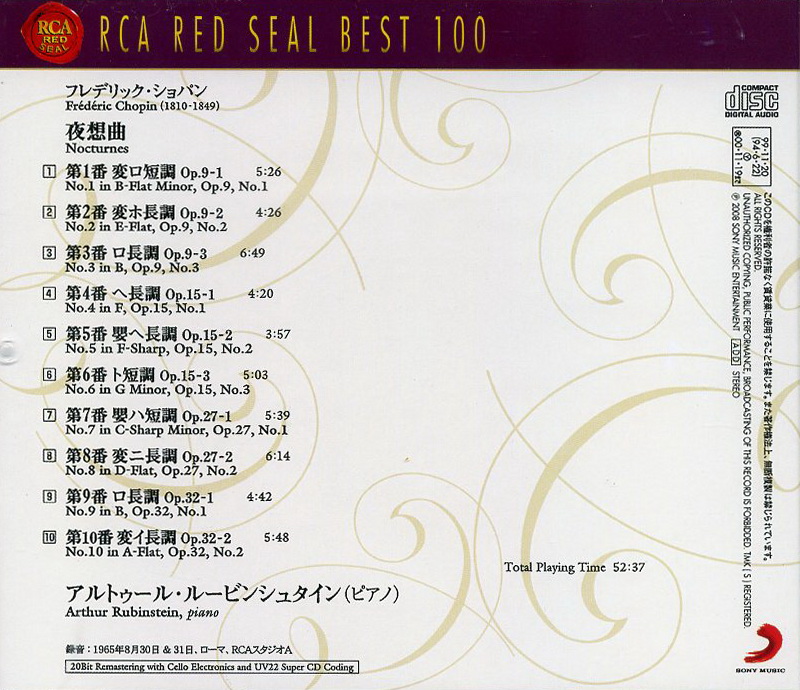 Index of /storage/0C1C9E5E1C9E431E/MUSIC 2nd/convert/Chopin - Piano Sonata No.2ㆍNocturnesㆍPiano Concerto No.1/Chopin - Solo - Nocturnes - Arthur Rubinstein/CD 1/Cover